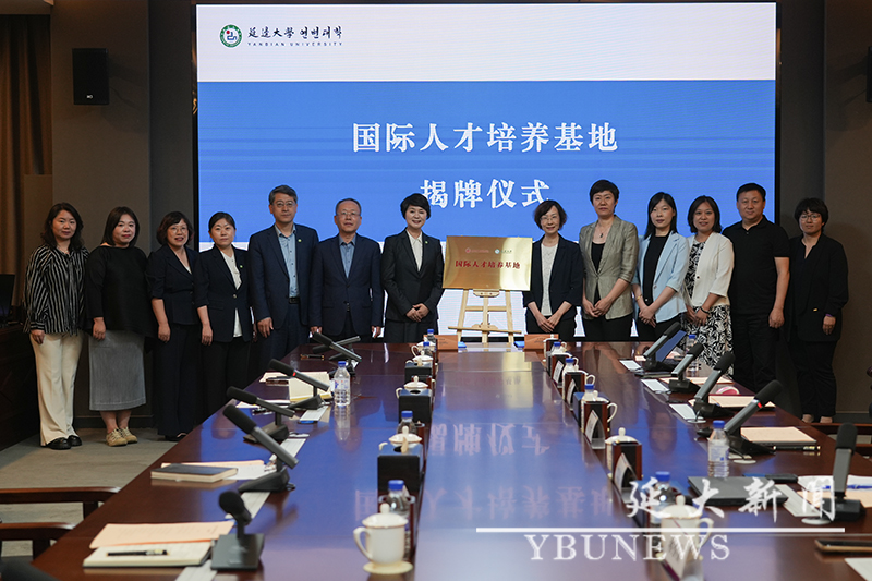 朱衛(wèi)紅、常小玲分別代表雙方簽署《延邊大學(xué)-外語(yǔ)教學(xué)與研究出版社共建“國(guó)際人才培養(yǎng)基地”合作框架協(xié)議》,并共同為“國(guó)際人才培養(yǎng)基地”揭牌。