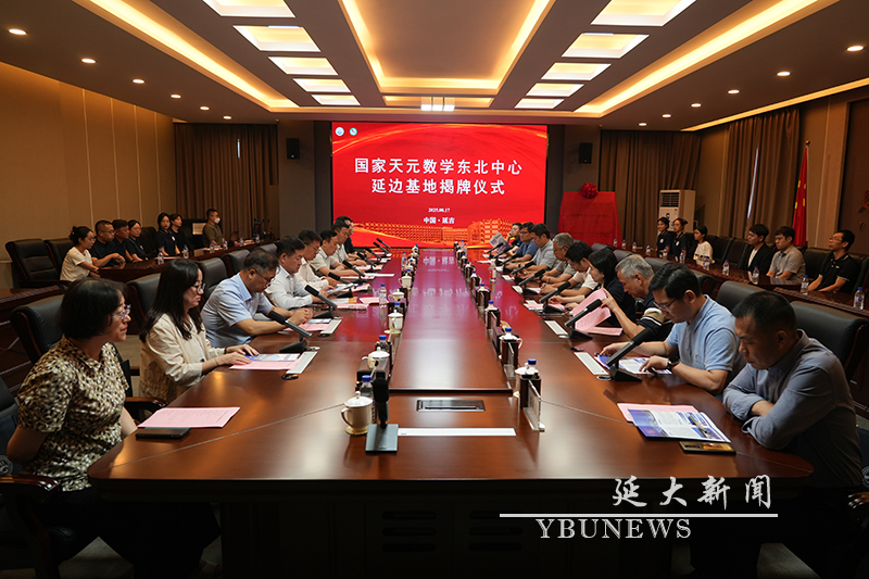 與會領導共同為國家天元數學東北中心延邊基地揭牌。科學技術處處長金元峰主持儀式,學校相關部門、學院負責人出席儀式。