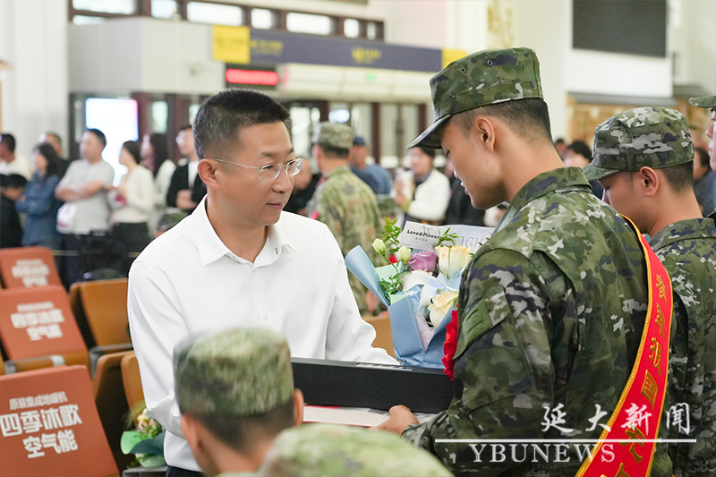 (武裝部供稿)9月16日清晨,延邊大學2025年下半年新兵入伍歡送儀式在延吉西站舉行,11名懷揣著保家衛國夢想的延大學子踏上投身國防事業的征程。校黨委副書記于金歡來到現場,為新兵們送行。